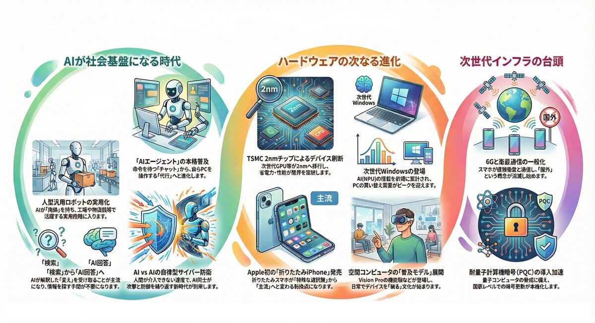 2026年は、このテクノロジーがもたらすメリット、デメリットの両方を見据え、私たちがどのような未来を選択するのかを問い直す、重要な分岐点となりそうです。