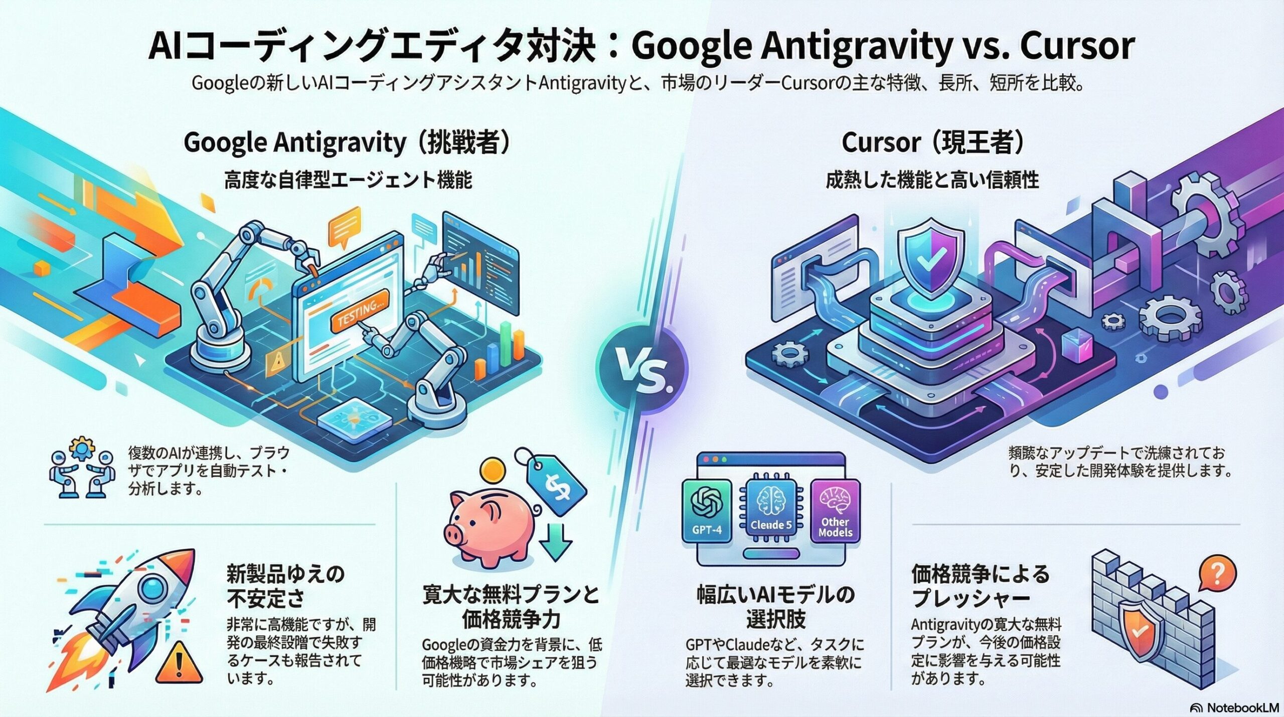 今後の市場動向は、Cursorのスピード感ある革新と、Antigravityの成熟度向上にかかっています。