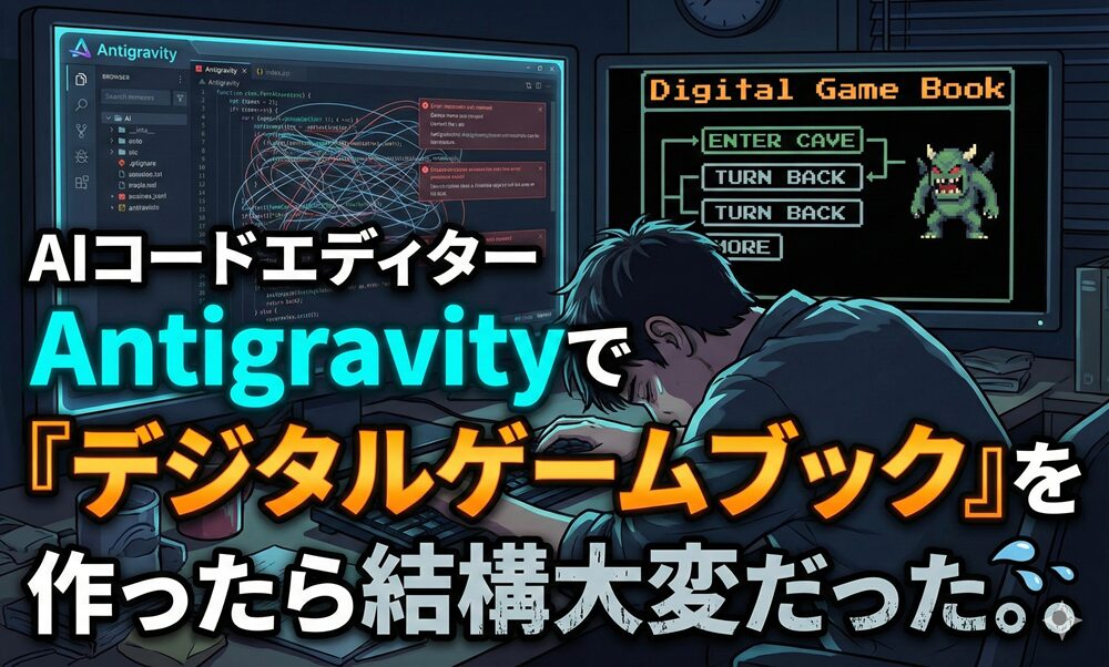 今回は、GoogleのAIコードエディター「Antigravity」を使い、AIが製作者、私は編集者というポジションで、HTML/CSS/JavaScriptを駆使した「デジタルゲームブック」の開発記録をご紹介します。