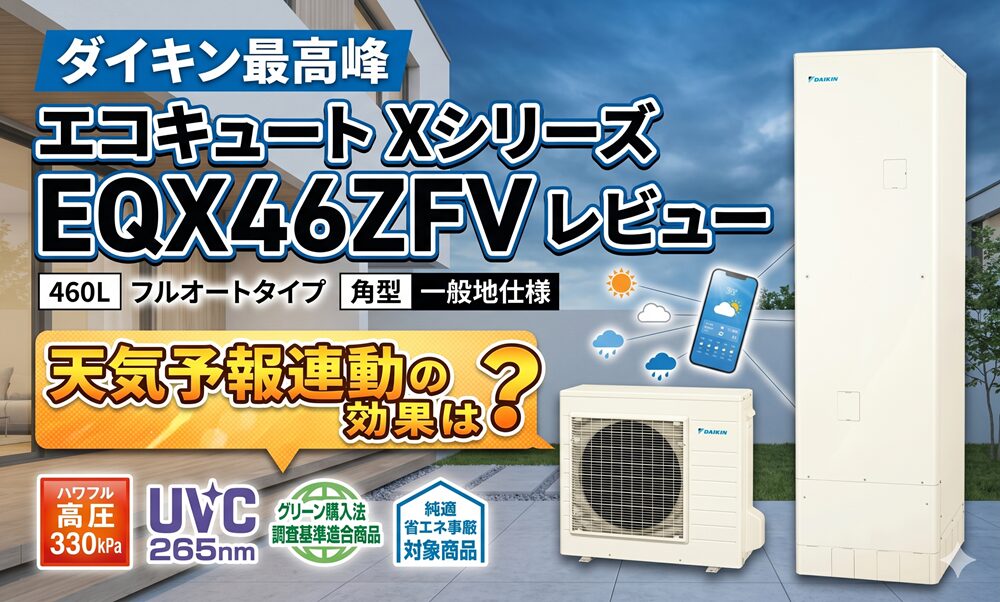 ダイキンのエコキュートにはいくつかグレードがありますが、今回導入した「EQX46ZFV」は、省エネ性能と機能性に優れた最上位のXシリーズです。