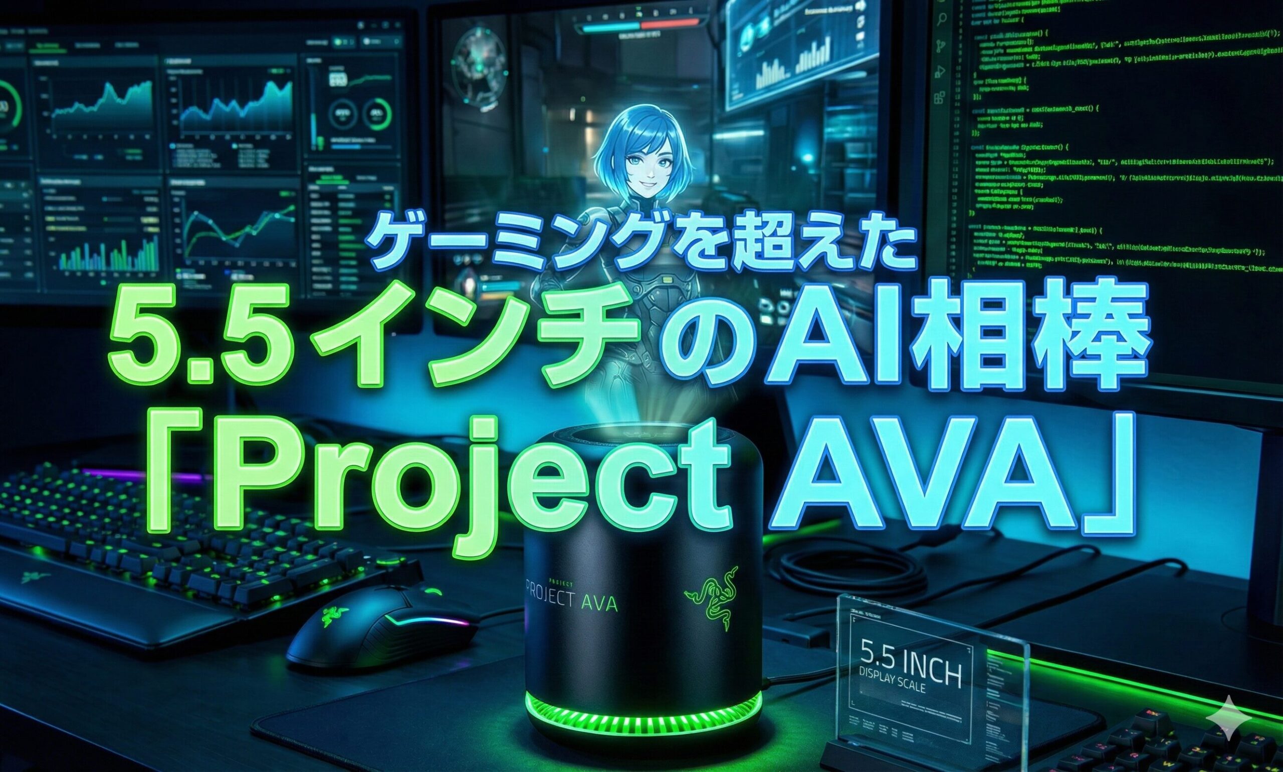 Razerが新たに発表したコンセプト「Project AVA」は、eスポーツのコーチであり、仕事のアシスタントであり、そして何より、あなたのデスクに物理的に存在する「相棒」です。