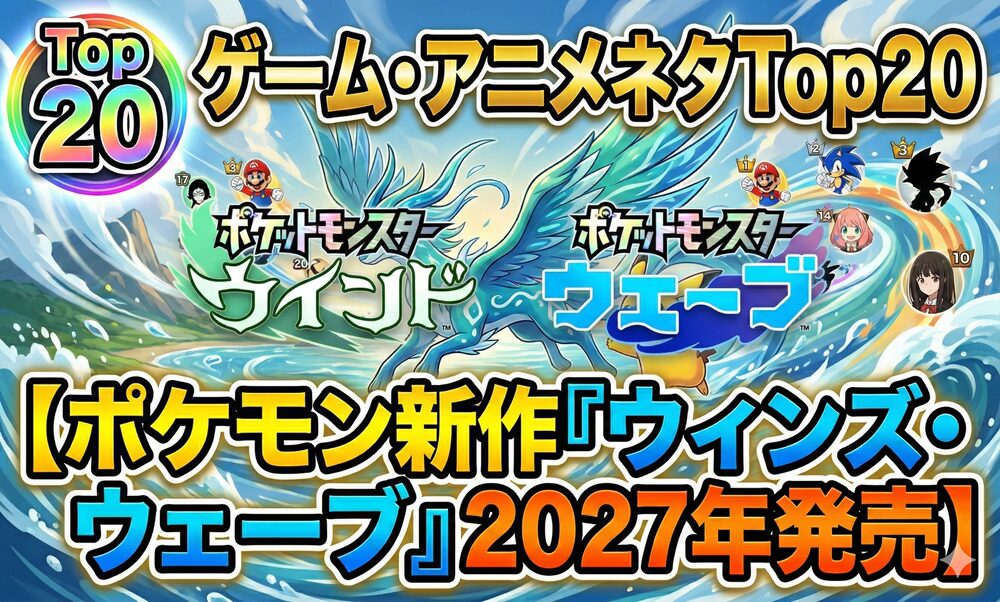 - 1位:『ポケットモンスター ウィンズ/ウェーブ』発表(2027年発売) – 日本最大のIPにおける第10世代の幕開け。