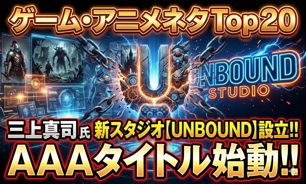 | 2 | 三上真司氏の新スタジオ「Unbound」がコンソール・PC向けAAA完全新作を開発中 | 『バイオハザード』の父、三上氏が新スタジオ「Unbound」でAAA級のオリジナルIPを開発していることが判明しました。 | Source |