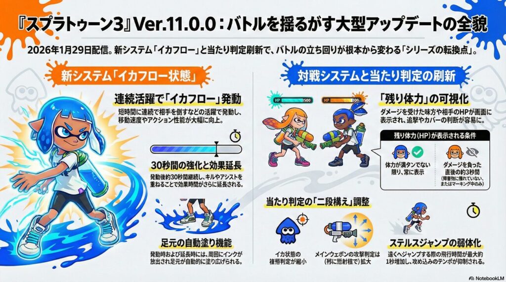 『スプラトゥーン3』発売から3年半、突如として発表されたVer.11.0.0アップデート。2026年1月29日に配信されます。